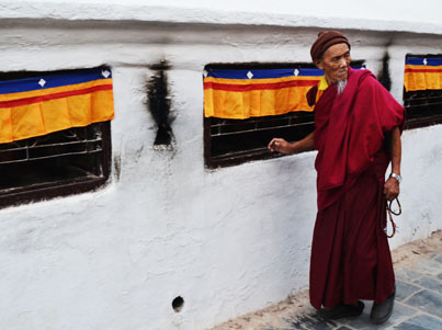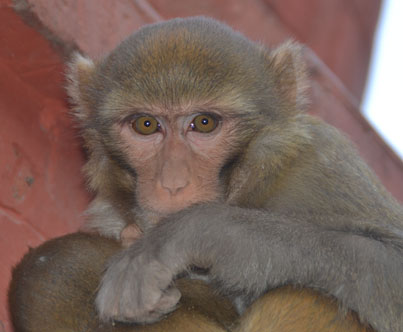 Везде бегают и прыгают взрослые и маленькие мартышки. Повсюду каменные скульптуры, молитвенные барабаны, дрожащее на ветру пламя светильников.