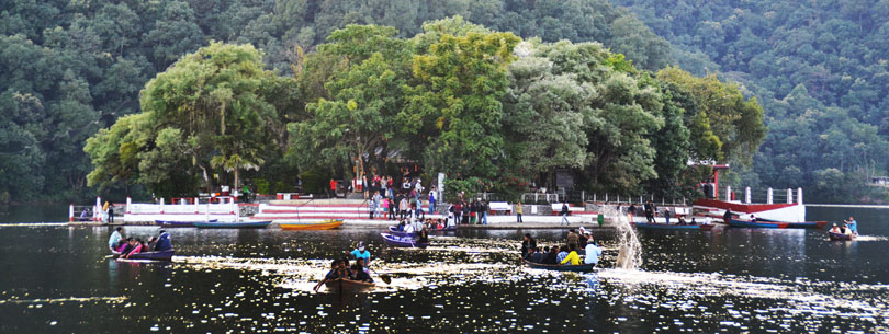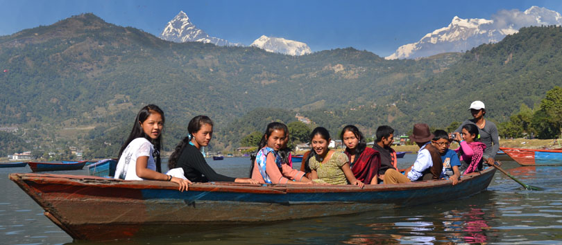 Горный курортный город - совершенно сказочное место - на берегу глубокого зеленого озера Пхева с фантастическими панорамными видами на гималайские горы - снежные пики Аннапурн отражаются в водах озера, по которому мы катались на лодке.