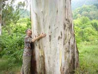 А пока прощаемся с башней и поднимаемся по улочкам вверх. Впереди эвкалиптовая аллея… Что удивительно, тут прохладно, но нельзя сказать, что стоит большая тень. Приглядевшись, понимаем, что листья повернуты к солнцу ребром. К тому же все листья разного размера и формы. Кое-кто принюхивается, пытаясь ощутить целебный эвкалиптовый запах… Процессия останавливается, потому что каждому хочется обнять гладкий ствол, прижаться к лечебному дереву. Как непривычно дотрагиваться до как бы голого ствола, он почти скользкий. Наша остановка здесь не случайна. |