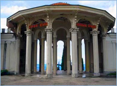 Впереди под тентом курортный базарчик. В первые дни лучше обходить его, пусть и под лучами солнца, потому что местные продавцы весьма заинтересованы в том, чтобы вы хотя бы на минутку подошли к их павильончику, рассмотрели один, два из сотни, тысячи местных сувениров, которые сделаны руками трудолюбивых абхазцев. Но еще не время, еще будет возможность привыкнуть к обилию замечательных изделий, разноцветных баночек с ароматными приправами, бутылок с вином из всех возможных ягод и фруктов… Мы приближаемся к ВОДОПАДУ. По пути проходим мимо Храма Симона Канонита и музея абхазского царства. Здесь мы еще побываем. А пока наша цель – водопад.