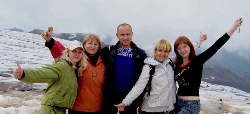 На фото: участники "Ауры" на склонах Эльбруса
