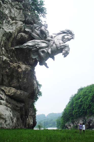 Огромная скульптурная композиция нависает над дорогой. Это место является святым. Тут часто устраивают праздники. Кстати, местные жители предупреждают, что рядом с памятниками нельзя сквернословить. Конная статуя крепится к скале, и, говорят, весит 28 тонн! Мы так и не смогли определить, кому она посвящена. Так как люди говорили, как бы разное, и вместе с тем – одно и то же. Одни говорили, что это Ныхас Уастырджи, как называют его в Северной Осетии. Уастырджи является покровителем мужчин, путников и воинов. В нартском эпосе Уастырджи описывается как небожитель, изображается в виде грозного воина на белом коне, в белой бурке. Считается, что Уастырджи постоянно носит с собой оружие. Спускаясь на землю, он проверяет людей, чтобы узнать помогают ли они друг другу в нужде и горе. Среди людей ОН появляется в облике нищего. Женщины боялись произносить имя Уастырджи и говорили о нем иносказательно «лагты дзуар» - «бог мужчин». Они не имели права даже участвовать в празднествах, устраивавшихся в честь Уастырджи. Он считается врагом воров, мошенников, клятвопреступников, убийц. И является покровителем честных, благородных людей. |