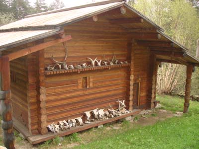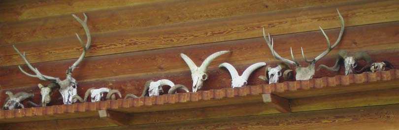 Внутри на стене – полка с черепами жертвенных животных – оленей, баранов, туров. Тут же деревянная чаша с монетами и бумажными деньгами.