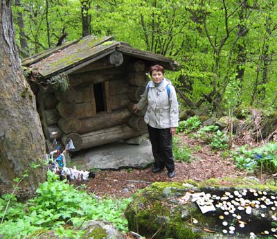 И потому женщины идут в другую сторону - к женским святилищам, расположенным в стороне. Хотя и они посылают к Рекому какие-либо свои вещи. Жрецы произносят над ними ритуальные молитвы, и благодать распространялась и на слабый пол. После бесланской трагедии многие матери, потерявшие своих детей, отправляли дары к Рекому, чтобы погибшие попали в страну, где есть зеленые луга и чистая вода. Таковы в Осетии представления о рае. «Мады Майрам» – святое место Божьей Матери. Маленький кубический сруб, покрытый толстыми досками и камнями, на груде камней. Через квадратное отверстие молящиеся кладут свои приношения. У подножия свалены турьи рога. Сруб окружен небольшим двориком. |