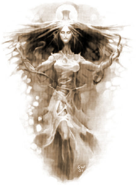 Богиня Геката была очень завистливой. У всех других богинь есть дети, да и не по одному, уже и имена с трудом придумывают, она все бездетна. Шло время. И превратилась Геката в богиню зла и черного колдовства. Заявила она, что не нужны ей эти малявки, от них одни заботы, которых у нее и так по горло. Как-то увидела она на лесной полянке женщину с маленьким сыном и привычно решила поиздеваться. Сначала наслала грозу. Бьют молнии вокруг людей, гром гремит. Страшно! Женщина, убегая, падает и ломает ногу. «Ну, - думает Геката, - бросит ее сейчас мальчишка и побежит прятаться под скалу». Так нет, тащит он мать, закрывает от молний своим маленьким тельцем. Упала рядом загоревшаяся шелковица, огонь искрами разбежался по земле. Но не боится ребенок, все равно помогает матери, идет по горящим головешкам босиком. |