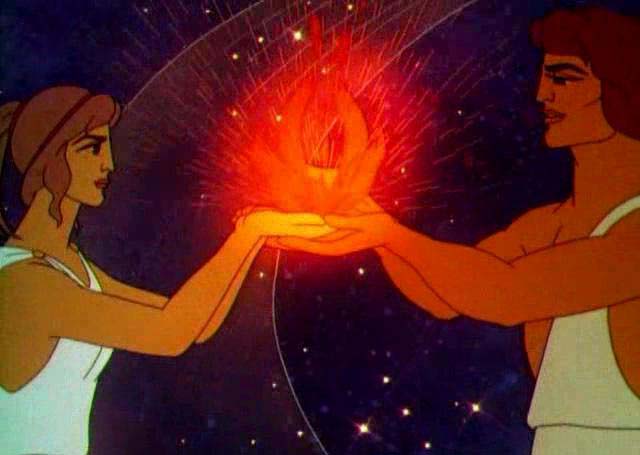 Могучий титан по имени Прометей похитил с вершин Олимпа огонь и дал его людям. Своим поступком он разозлил Зевса. Но Прометею понравились люди. Более того, он полюбил красавицу. Ради любимой он, собственно, и совершил такой подвиг. Титан дал людям знания, научил их земледелию, ремеслам, постройке кораблей, чтению, письму, сделал жизнь людей счастливее. Добытый им огонь светился в домах, ковалось железо для плугов. А Прометей и его возлюбленная сидели по вечерам у моря, у крутой скалы, и смотрели на закат. Разгневанный Зевс примчался к скале, нашел влюбленных и ударил молнией. Пронзила она Прометея и девушку. Выскользнула возлюбленная из рук бессмертного титана и превратилась в пепел. |