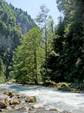 И охваченные восторгом и желанием тут же искупаться, мы начинаем раздеваться и заходить в речку уже по пояс, жаль, что они тут неглубокие. И уже и не холодно, уже замечательно. И остановка «посмотреть на речку» увеличивается, и нет никаких сил покинуть это место. А ведь на грани сознания еще помним, что впереди и водопады разные, и голубое озеро – озеро старца, и каньоны, высоченные скалы-небоскребы, каменные мешки, величественные панорамы, мосты, бесконечные грандиозные виды, и сама Рица. Столько всего, а мы тут застряли в этой речке. Но никто не воспринимает это задержкой, и никто не спешит к Рице. Ведь все время – наше, все наши желания сегодня имеют приоритетное значение.