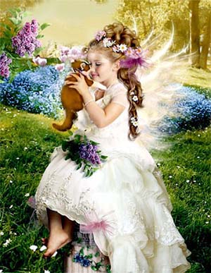 Девочка схватила котенка и подняла его на вытянутых руках вверх. Сейчас она напоминала ангела на собственном рисунке.