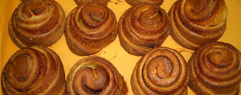 Состав: 3/4 ст. молока, 50 г размягченного маргарина, 3 1/4 стакана муки (430 г), 2 ч.л. (7 г) быстрорастворимых дрожжей, 4 ст.л. сахара, 1/2 ч.л. соли, 4 ст.л. воды, 1 яйцо, 1 стакан коричневого сахара, 1 ст.л. молотой корицы, 100 г размягченного маргарина, 1/2 стакана изюма.