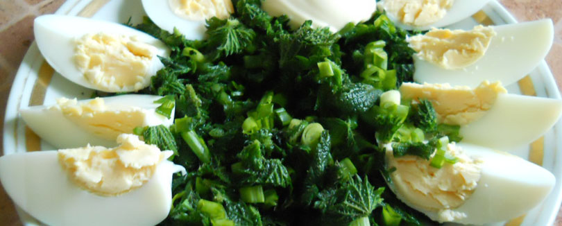 Для салата крапиву нужно промыть, опустить в кипяток и варить 3 минуты, потом откинуть на дуршлаг, обдать холодной водой и можно резать, не боясь обжечься. В суп крапиву следует добавлять за 5 минут до готовности.