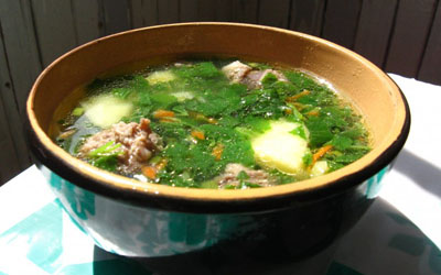 Щи из крапивы: Перебрать и промыть листья. Положить в кипящую воду на несколько минут. Откинуть на сито. Протереть. Морковь, петрушку, лук порезать и спассеровать в масле с небольшим количеством муки. Переложить смесь в бульон. Варить до готовности, В конце добавить щавель и крапиву. Подавать с крутыми нарезанными яйцами и сметаной. А также и сметану.