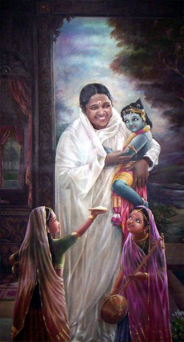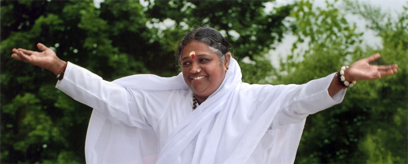 История Аммы такая же удивительная, как и она сама. Скажу в двух словах – она была самой необычной маленькой девочкой, начав рано ходить и говорить… и помогать другим. Кто-то считал ее сумасшедшей, и ей часто приходилось несладко. Страдания, с которыми она столкнулась лично и то, что она видела вокруг, вели ее вглубь. Еще ребенком она уже исследовала вопрос человеческих страданий, откуда и почему они существуют. Родители пытались выдать Амму замуж, но она сопротивлялась. Тогда они бросили эту затею. Их дочери суждено было стать Невестой Бога и Матерью всему человечеству. Люди стали стекаться к молодой женщине для встреч и бесед о жизни.