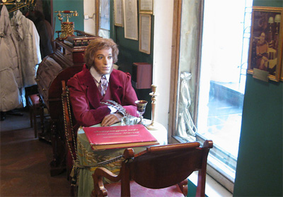 Богемное местечко. Когда-то это была кондитерская, куда зашел перед дуэлью Пушкин, выпил стакан лимонаду и отправился в Путь, из которого уже никогда сюда не вернулся. Но разве уйдешь из памяти людей? Вот его и вернули – на то самое место, где когда-то он и сидел. И пусть это восковая фигура, всего лишь Символ. Но символ того, что люди пытались остановить бегущее время – остановить Его, чтобы не совершил того, что случилось. В нас – он живой и никуда к Дантесу не вышел, остался здесь… Мы сидели в кафе на втором этаже и выбирали блюда, рассматривая удивительное меню – такую огромную красную книгу. |