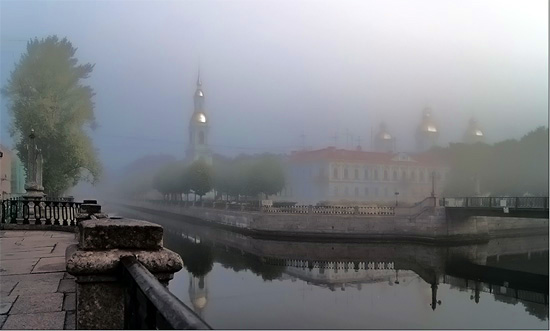 Я всматривалась в утекающие уличные сюжеты, не вникая особенно – давая простор собственным додумкам и фантазиям, которые скользили, оставляя внутри ощущение чего-то сказочного. А через мгновение улетучивались, потому что перед глазами возникало новое что-то: фасад старинного особняка, чугунная скамейка, фонтан… Впереди – справа показалась ограда. Приблизилась – Казанский собор! Ну и туман…. Решетки – чугунные, сделанные два века назад, притягивали – я положила руки на тяжелый мощный завиток – он был холодным и мокрым… Воронихин обладал удивительным чувством какой-то аристократичности – решетка создавала ощущение торжественности – среди ажурной вязи тонкие стрелы, устремленные вверх… Какая-то странная щемящая связь с чем-то древнерусским…