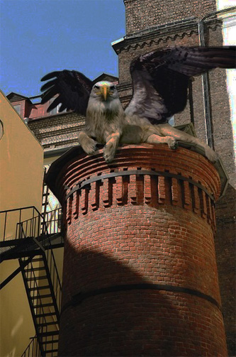 - Грифоны. Существа такие… С четырьмя ногами, телом льва, с крыльями и головой орла. Они существовали на земле очень и очень давно. Сохранились записи о них. О них писал Геродот, например, в своей «Истории». И еще греческий врач Ктесий из Книдоса. Он писал, что это порода четвероногих птиц, размерами не уступающих волкам, лапами и когтями напоминающих львов, а туловище покрыто черными перьями, только на груди они красные. И во все следующие века грифоны кочевали из книги в книгу. Их изображениями украшали гербы. Даже на гербе Романовых грифон. Символизировал он многое, ведь соединял в себе качества птицы и зверя, небеса и землю, добро и зло. А еще ему было известно, как отыскать золото. Говорят, доктор Пель разводил грифонов. И они жили в этой самой башне. А по ночам вылетали из своего убежища. В окнах домов можно было видеть их отражения, и жители слышали шум их крыльев. Полина Бенедиктовна рассказывала, что еще в царские времена жители этого и соседнего дворов жаловались в полицию, что им мешает шум крыльев в ночное время. И полиция пыталась расследовать. Даже в местной газете об этом писали. Ах, слухи, слухи… Но видишь ли, легенда не исчезает. Ты сама слышала шум крыльев. Говорят, что доктор Пель занимался алхимией. А что ты знаешь об алхимии? - Ну, то, что алхимики занимались поиском возможности превращать в золото другие металлы. |