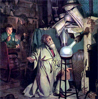 - Верно. А другая цель ее – достижение бессмертия. И говорят, алхимики таки нашли эту формулу. А ведь все хотят оставаться вечно молодыми. Но есть и третья цель алхимии – достижение счастья. Как думаешь: поиски золота, молодости и счастья имеют что-то общее? Отвечая на этот вопрос, помни одно: алхимия не началась в средние века. Ей куда больше лет. То, что доступно – куда мы еще можем заглянуть: древняя Индия. Главной целью алхимиков Индии был человек. Именно там искали возможности внутреннего его изменения, достижении мистических состояний. Опыты алхимии осуществляются не столько химическими и физическими способами, сколько философскими при помощи души.