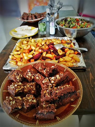 Столовая оборудована всем необходимым для обеспечения трехразового питания. В ней есть уютная мебель, wi-fi, питьевая вода, холодильник и чай из крымских трав, доступные круглосуточно. Команда во главе с шеф-поваром разрабатывает меню в соответствии с пожеланиями гостей.