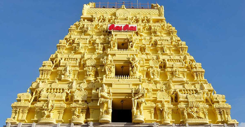 На пятый день – едем в сакральный город Рамешварам (4 часа в пути) - наиболее значимый центр паломничества в Южной Индии. Город находится на острове в заливе Маннар и связан с материком длинным мостом имени Индиры Ганди. По легенде Рамешварам находится на месте, где Рама построил мост через море к Шри-Ланке для спасения своей супруги Ситы от её похитителя Раваны. И именно здесь же Рама совершал поклонение Шиве для очищения от греха убийства своего врага. Об этом написано в двух публикациях Елены Романовой: