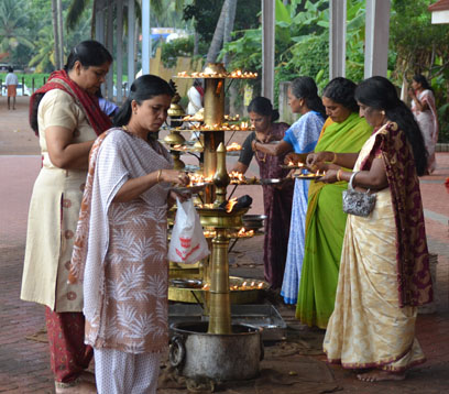 А вот эту скульптуру бога Вишны европейцам можно увидеть лишь на картинке. Это самая важная достопримечательность Кералы. Для того, чтобы прикоснуться к этому сокровищу, в Тривандрум приезжают со всей страны. Жаль, конечно, что в храм пускают только индусов. Так что эти сокровища нам не суждено увидеть вживую...