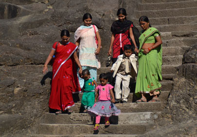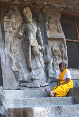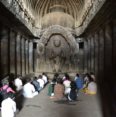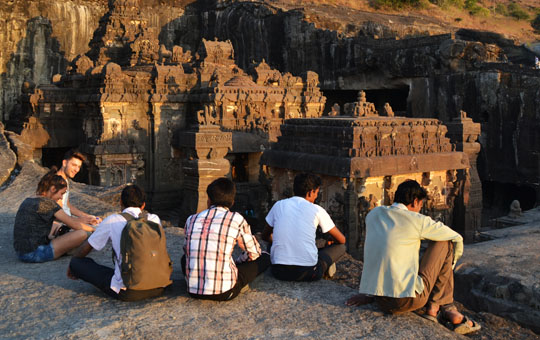В 30 километрах западнее Аурангабада находится небольшая деревня – Эллора. Здесь находятся всемирно известные пещерные храмы. Это  одна из основных достопримечательностей Индии. Всего пещер 34. Из них 12 - буддийские, 17 – индуистские, 5 – джайнские. Сооружены они не из строительного материала, а высечены в скальных породах. Все лишнее отсекалось и получались огромные пространства с великолепными скульптурами. В Элоре мы были дважды. В первый день смогли осмотреть небольшую часть комплекса. К тому же закончился заряд аккумулятора в фотоаппарате. Поэтому ранним утром следующего дня мы вновь отправились туда, чтобы весь день пробыть среди этого каменного великолепия и, конечно же, сделать снимки, которые  выставляем на ваше обозрение.
