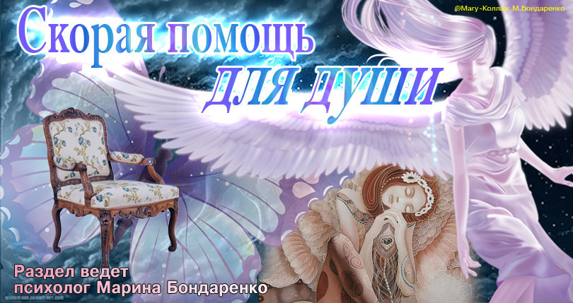 Наш раздел «Скорая помощь» - это скорее обоюдный контакт с теми, кто доверяет нам, и кто действительно хочет избавиться от проблем на пути к Волшебству. А для этого надо суметь рассказать о себе - раскрыться, прояснить ваше состояние в данный момент без прикрас и без грима. Казалось бы, проще простого – сесть и написать нам. Но для кого-то решиться на подобное равносильно смерти. Внутренний страх нашептывает: «Молчи, не высовывайся, не позорься, держи в себе все свои пороки». Вот так и держим то, от чего надо давно бы освободиться и легко идти вперед.