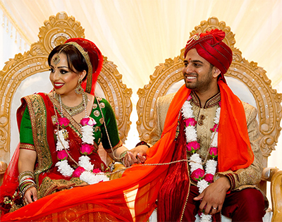 После этого отец жениха начинает громко перечислять имена своих предков, как бы призывая их в свидетели того, что их род продолжается. И только после этого появляется священнослужитель. Он ведет молодых к специально сооруженному для этой церемонии алтарю с изображением индуистских богов и приступает к освящению союза. Прочитав на санскрите свадебную молитву, он соединяет руки молодых гирляндой цветов и выслушивает клятвы верности друг другу. Теперь можно считать, что рождение новой семьи состоялось.