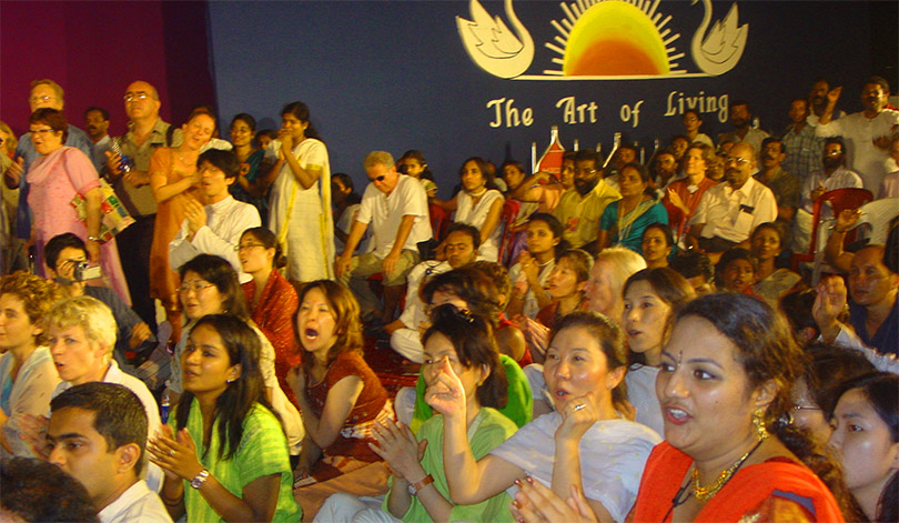 «Мы часто полагаем, - сказал Рави Шанкар, - что когда-нибудь в будущем, после смерти, мы встретим Бога. Но нет, Бога следует искать в собственном сердце и сейчас»... Рави Шанкар — поразительно обаятельный человек с длинными волнистыми волосами и вьющейся бородой. Его фигура в белой одежде, живые горящие глаза сразу же вызывают ассоциацию — сравнение с обликом Иисуса... Ашрам Рави Шанкара притягивает людей со всей Индии — по большей части молодых, современных, принадлежащих к среднему классу, а также иностранцев... Девиз программ, практикуемых в ашраме, — «веселье и расслабление». Организаторы подчеркивают, что эта система не входит в противоречие ни с одной религиозной традицией или духовной практикой. |