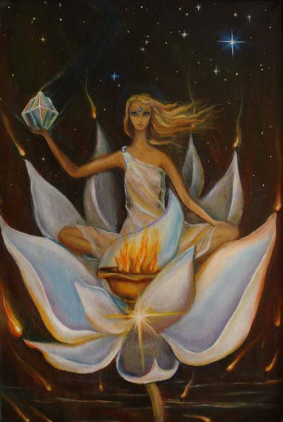 Художница Ольга Критская много лет сотрудничает с «Аурой». Можно сказать, что ее интерес к эзотерике возник после прочтения наших первых публикаций на темы космических связей человека. После этого она стала рисовать необычные картины - о Вселенной и о месте человека в ней, о посланниках внеземных цивилизаций. Многие из ее полотен в настоящее время находятся в различных частных коллекциях и разыскать их не так уж просто. Но некоторые фоторепродукции картин сохранились в нашем редакционном архиве, другие же недавно прислала нам Ольга Критская по электронной почте. Знакомство с ее живописным творчеством было бы не полным без отрыва от ее мировоззренческих позиций. В этой публикации она рассказывает о своем опыте духовного становления. Материал иллюстрирован картинами автора. |
