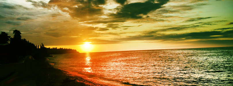 И вот, спустя 20 минут верхушки гор начали заливаться светом, постепенно превращаясь в расплавленное золото. Я первый раз в жизни увидела золотую гору! Россыпь радужных лучей украсила весь небосклон, а вместе с ними и во мне стали подниматься лучи безпричинного счастья и радости. И вот из-за гор лениво и неспешно начало появляться солнышко. Оно осветило всё вокруг своими лучами и обняло своей теплотой всю землю. В море появилась солнечная дорожка, искрящаяся россыпью золотых искорок в переливающейся морской глади. Счастье и любовь поднялось теплой волной в моей душе и устремилось навстречу солнцу. Какое-то невероятное таинство происходило между нами… |