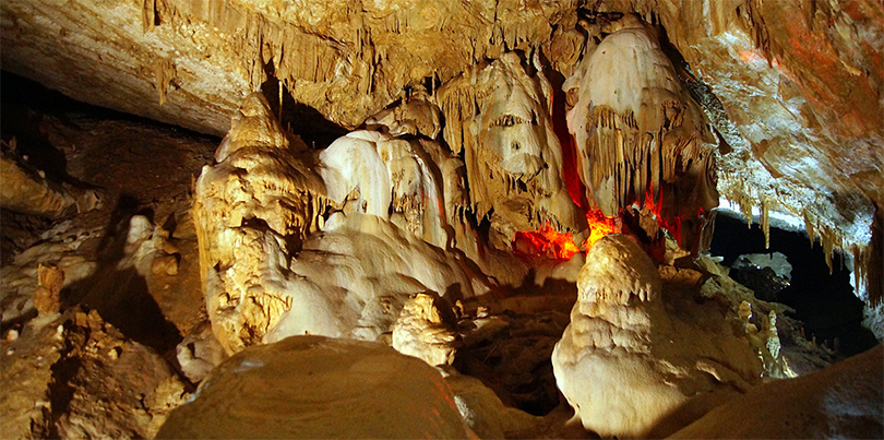 У меня создалось ощущение, что эти места живые, со своим влажным микроклиматом. Уникальную красоту пещер подчёркивают янтарные сталагмиты и сталактиты, освещенные яркой подсветкой и меняющейся цветовой гаммой, придают пещере сказочный вид. Восхищают воображение ледяные, почти прозрачные фигуры, образованные из кальцита. В выступах скал можно разглядеть очертания в виде различных животных.