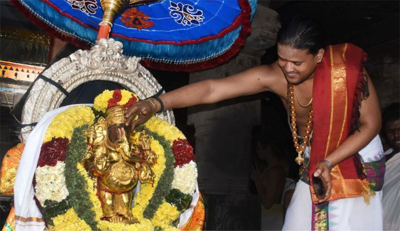 Находясь в храме Чидамбарама, я на какое-то время задержалась у одного из скульптурных изображений и стала внимательно разглядывать карлика под стопой Шивы. В этот момент ко мне подошел дикшитара. Заметив мой интерес, пояснил: